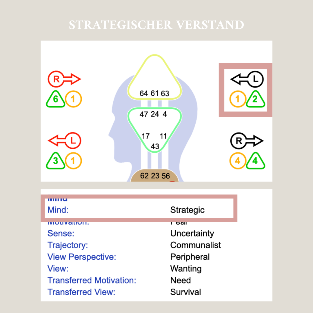 So kannst du beispielsweise erfahren, wie dein Denken und dein Fokus funktioniert, in welcher Umgebung du deine Energie am besten unterstützt, wie du Informationen aufnimmst und gut verdauen kannst, wie du die Welt um dich wahrnimmst und was dich motiviert, wenn du dich von deiner Strategie und Autorität leiten lässt.