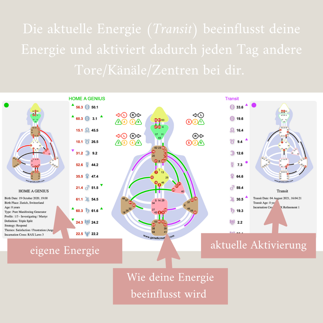 Bevor du dich in das Human Design Wissen vertiefst, brauchst du dein eigenes Human Design Chart. Anhand deiner genauen Geburtsangaben (Datum, Zeit und Ort) kannst du dieses auf folgenden Seiten generieren: